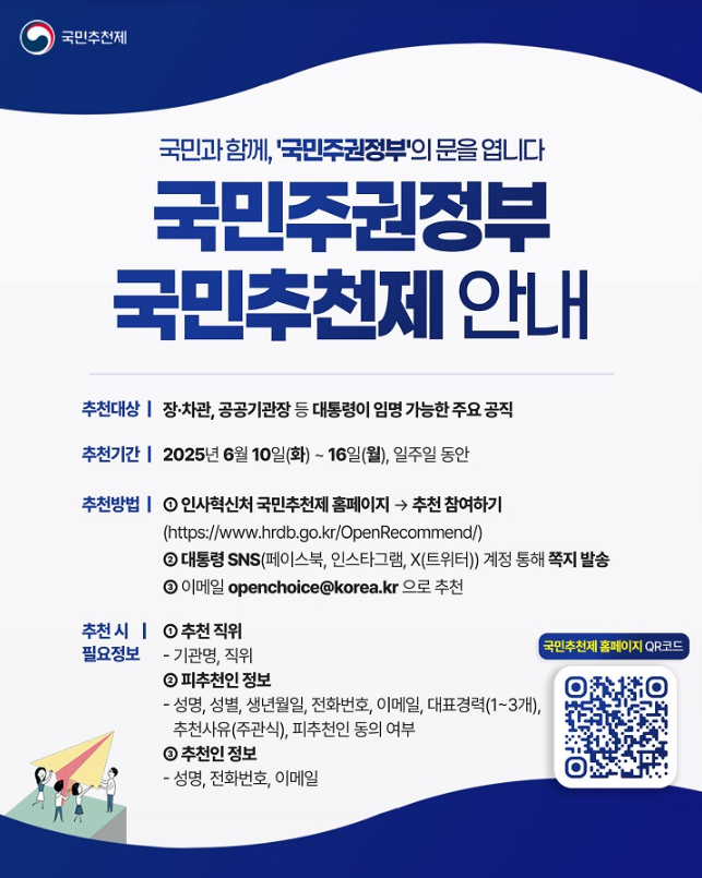 그동안 공직자 추천은 기관 내부나 특정 경로를 통해 이뤄졌지만, 국민의 의견을 직접 반영하자는 취지에서 도입된 제도죠.