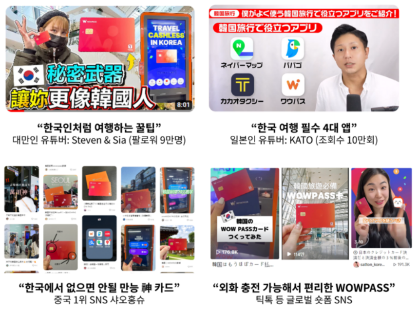 와우패스 카드 발급자의 국적 또한 100개국 이상으로 매우 다양하며 1위 일본, 2위 대만, 3위 홍콩, 4위 미국 순이다. 결재액이 가장 큰 업종은 1위 식당, 2위 의류매장, 3위 화장품이며 외국인들의 소비활동이 단순히 식당과 쇼핑에만 국한되지 않고 미용실, 피부과, 성형외과, 서점, 영화관, PC방, 노래방등 다양한 업종에서 발생하고 있다. 와우패스 키오스크의 단점이라면 아쉽게도 현재 총 5개국의 언어만 지원되고 있는 점이 아쉽고 앞으로 좀 더 보완되어야 할 부분으로 생각된다.