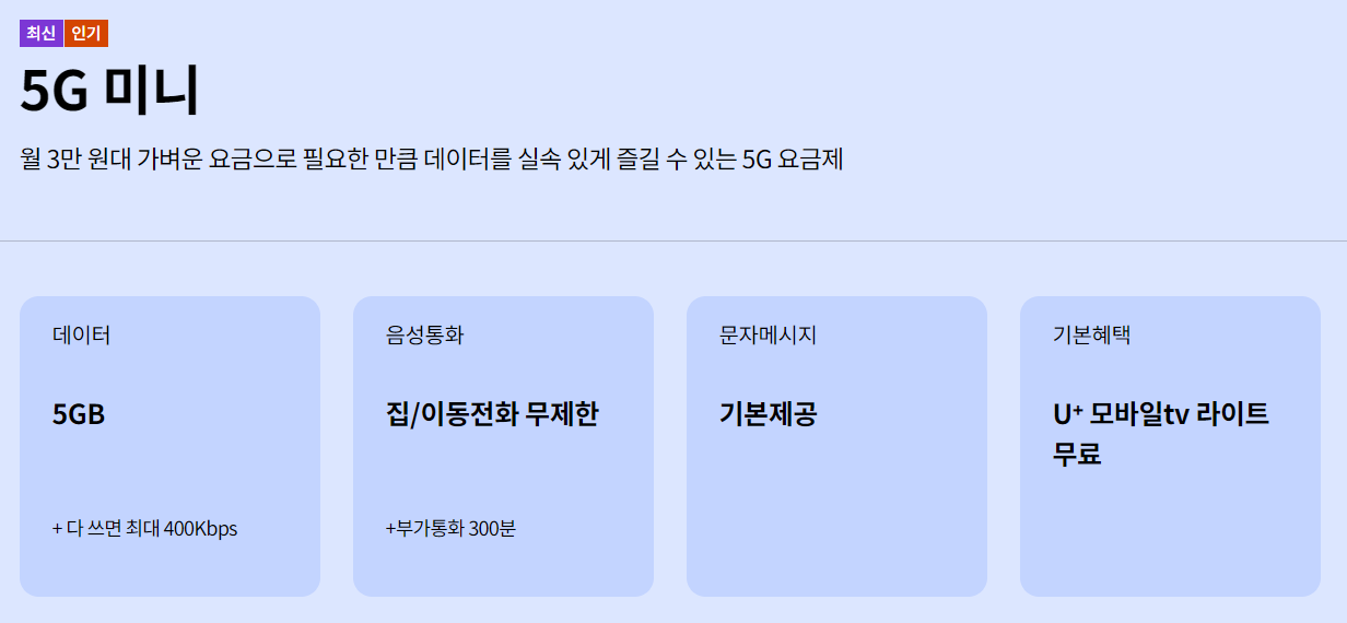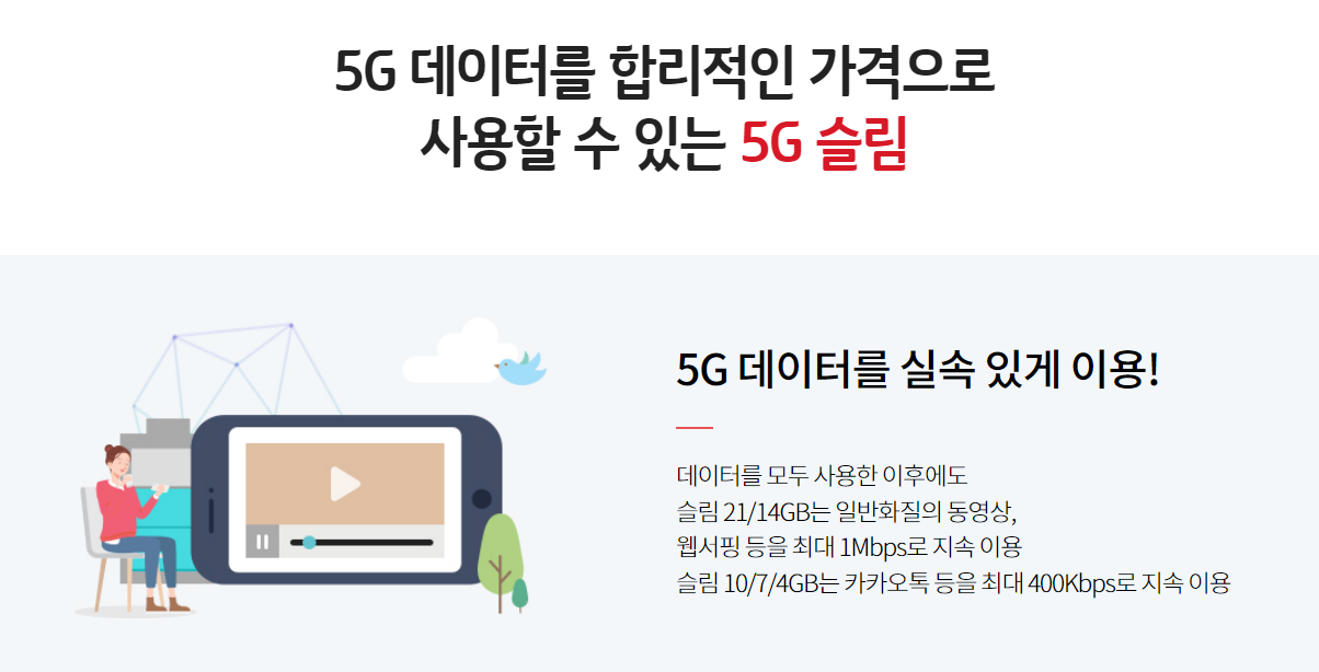 통신요금이 날로 높아져가고 있는 요즘 KT가 가장 먼저 3만원대 5G 요금제를 출시한데 이어 SK텔레콤과 LG유플러스도 3만원대 5G 요금제를 경쟁적으로 내놓으면서 데이터 저용량 구간의 소비자 선택지가 확대됐다. KT는 4GB 데이터를 제공하는 5G 슬림 4GB 요금제(3만7000원), SK는 6GB를 제공하는 컴팩트 요금제(3만9000원), LG는 5GB 제공한 미니 요금제(3만7000원)를 각각 출시했다.