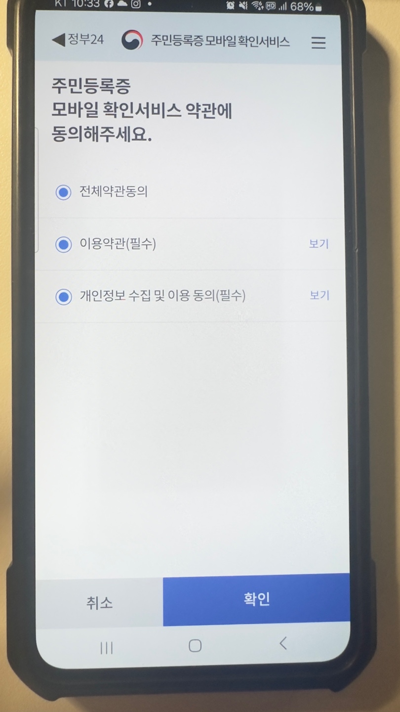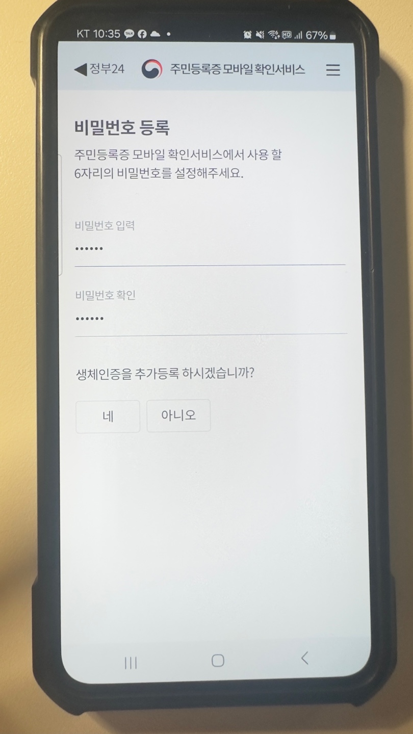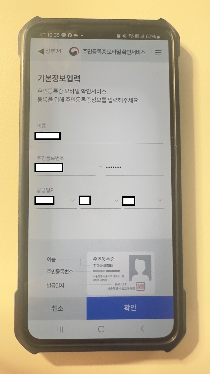- 스마트폰에 모바일 주민등록증 등록