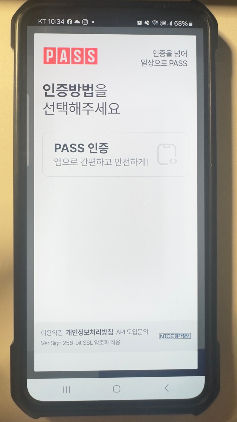 5. 사용하고 있는 통신사를 선택한 뒤 PASS 인증완료