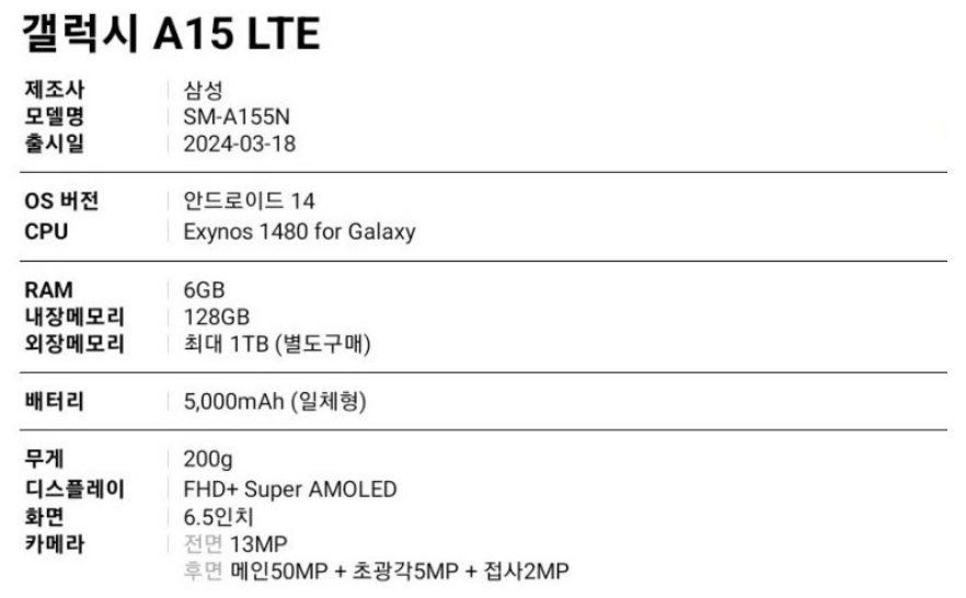 갤럭시 A15는 롱템에볼루션(LTE) 저가형 스마트폰으로 가성비 폰을 찾는 분들께 아주 좋은 선택지가 될 것 같다.